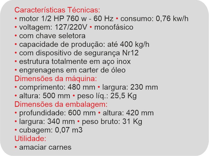 AMACIADOR E PREPARADOR DE CARNES SUPER EM AÇO INOX COM BOCAL DE 214MM – BM 115 NR PF – BIVOLT BERMAR