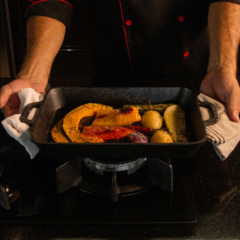 A Assadeira permite ser utilizada em variados tipos de fornos, seja à gás, lenha, elétrico ou qualquer outro tipo de indução. Por ser produzida em ferro fundido suporta temperaturas altíssimas e é ideal para o preparo de pratos como carnes, massas, e legumes assados, entre outros.