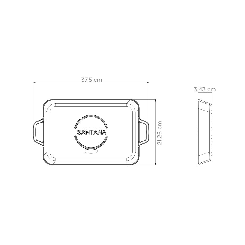 A Assadeira Santana FS 30 possui 2 alças de ferro, sua dimensão que equivale a 21,26 x 37,5 x 4,43 cm, ideal para o preparo de assados, seja bolos, carnes, peixes ou massas, e é muito utilizada para servir alimentos também. Pode ser usada em todos os tipos de fornos, a lenha, a gás ou elétrico e sobre todos os tipos de fogão.