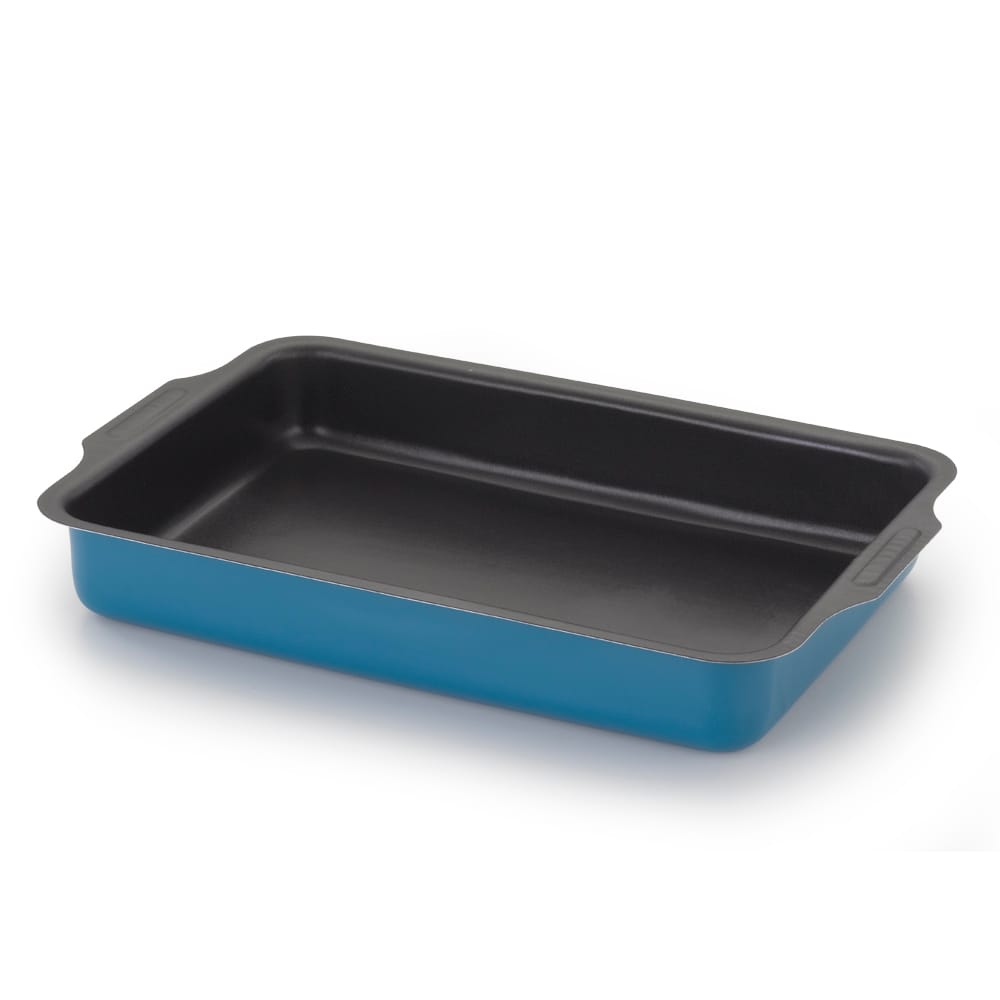 Assadeira Retangular Alta com Aba Turquesa Alumínio Nacional