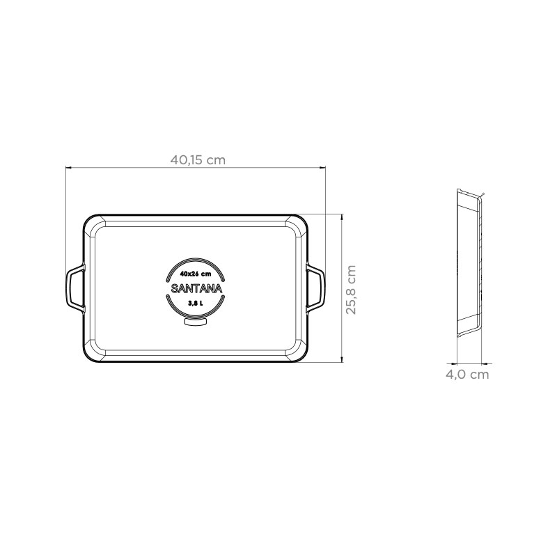 A Assadeira Santana FS 01 possui 2 alças de ferro, sua dimensão que equivale a 27 x 4,5 x 50 cm, ideal para o preparo de assados, seja bolos, carnes, peixes ou massas, e é muito utilizada para servir alimentos também. Pode ser usada em todos os tipos de fornos, a lenha, a gás ou elétrico e sobre todos os tipos de fogão.