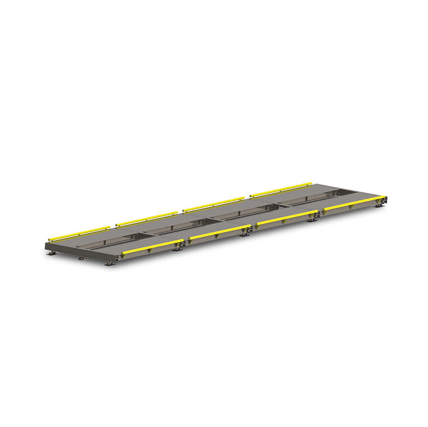 A plataforma da balança Metálica para Caminhões é dividida em módulos, facilitando o transporte e instalação.
