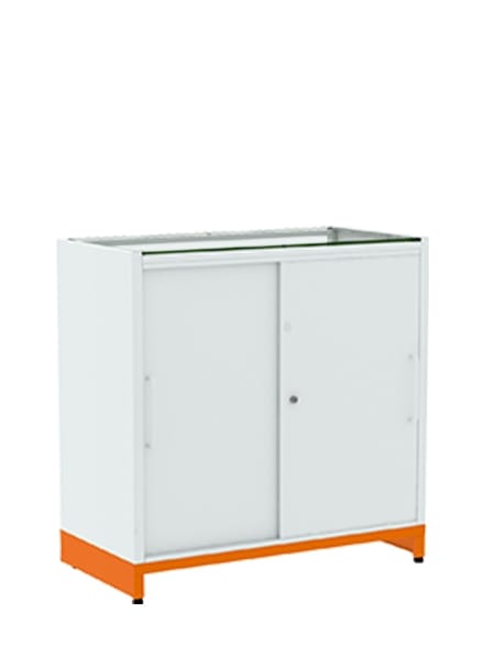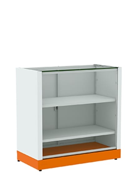 frente para vidro o que permite uma melhor visualização dos produtos e possui porta de correr com fechadura.