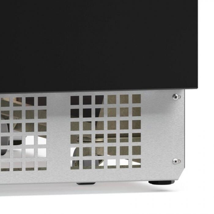 - Revestimento Externo: Base acoplada em aço pré-pintado preto, com passagem de ar em aço revestido aço inox 304 escovado