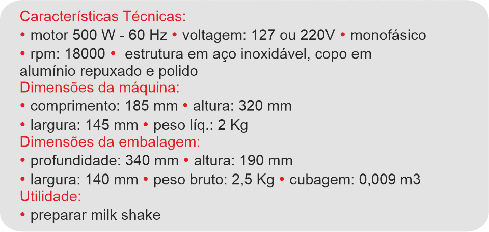 BATEDOR DE MILK SHAKE – BM 168 NR – 127V BERMAR