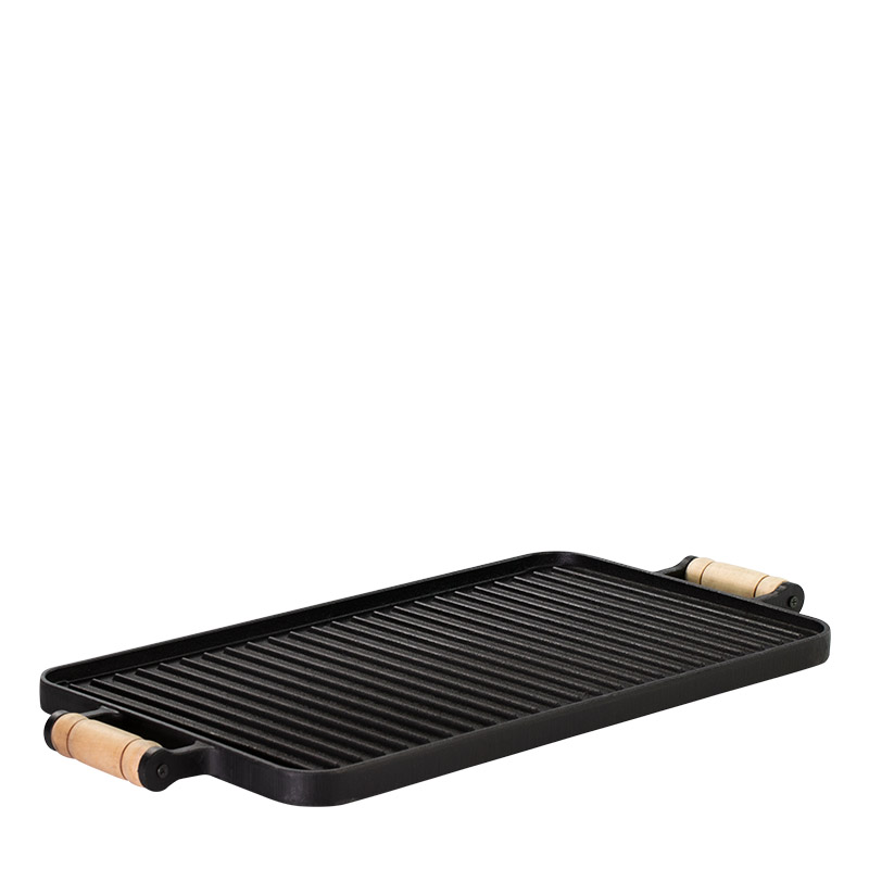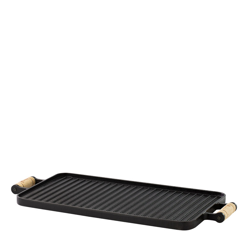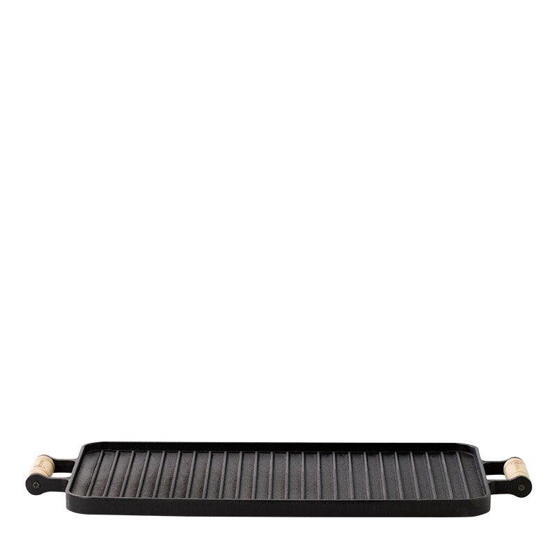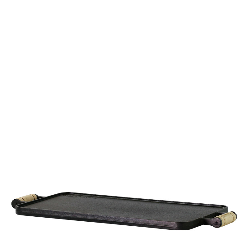 Esta bifeteira dupla face é muito utilizada em bares e restaurantes, para preparar e também servir deliciosas porções de carnes, pois mantém o alimento aquecido de forma uniforme por muito mais tempo, por ser feita com um material que é excelente condutor de calor (o ferro). Nossa bifeteira dupla face pode ser usada em todos os tipos de fogão a gás, a lenha, elétricos ou cooktop de indução.