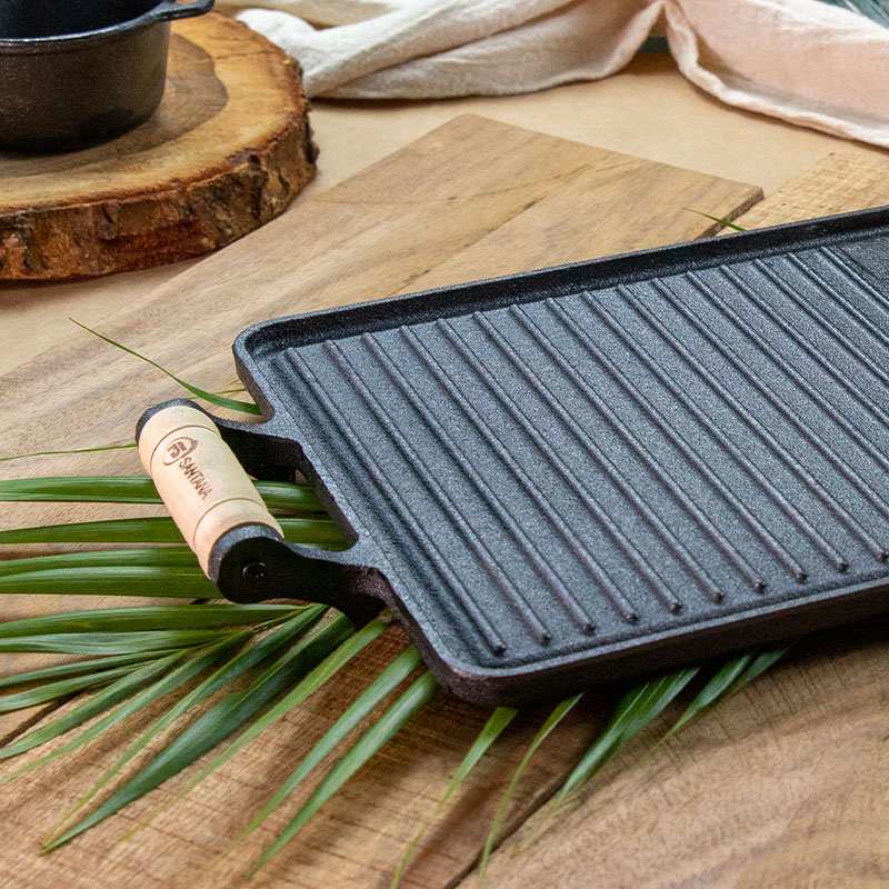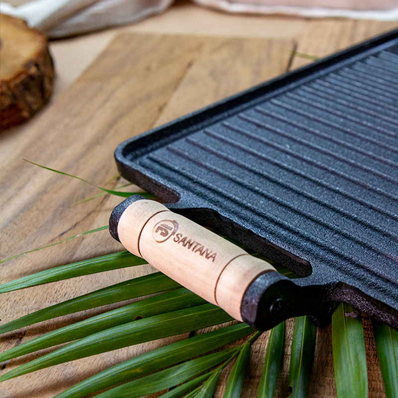 E as vantagens da bifeteira dupla face não param por aí! Você sabia que este modelo de bifeteira de ferro, bem como os demais produtos da Santana, contam com acabamento feito em revestimento 100% vegetal, através de um processo livre de química, sendo totalmente natural? Esse diferencial, contribui não só para deixar este utensílio com uma estrutura mais bonita e brilhante, mas também com o cuidado com a sua saúde e a sustentabilidade.