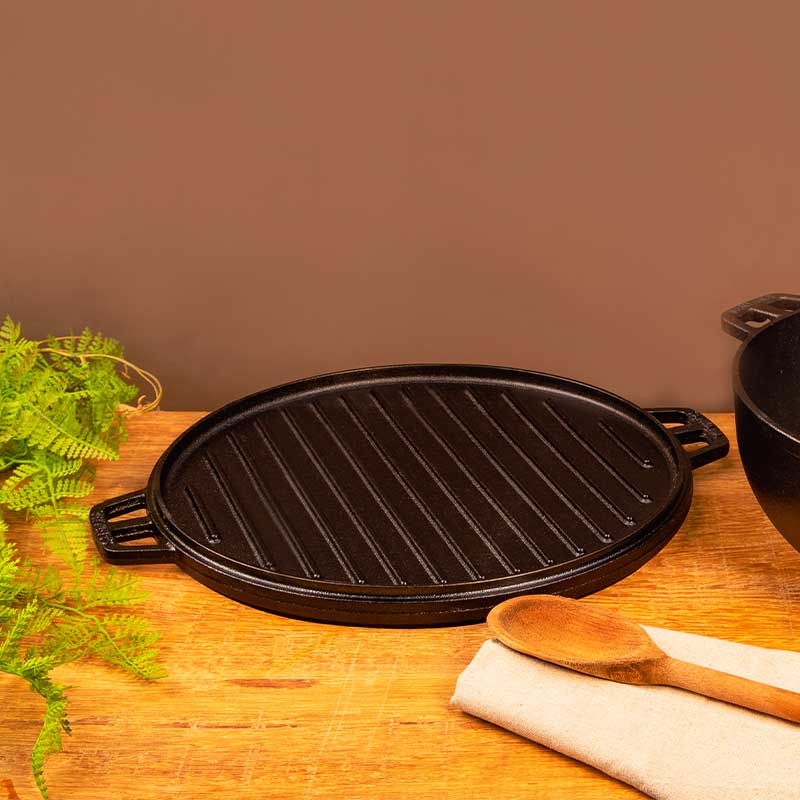Ideal para grelhar, selar e preparar refeições rápidas, a Bifeteira Dupla Face 30 é compatível com fogões a gás, elétricos e vitrocerâmicos, oferecendo versatilidade para o seu dia a dia. Além disso, o ferro fundido proporciona retenção de calor, ajudando a conservar o sabor e a textura das carnes.