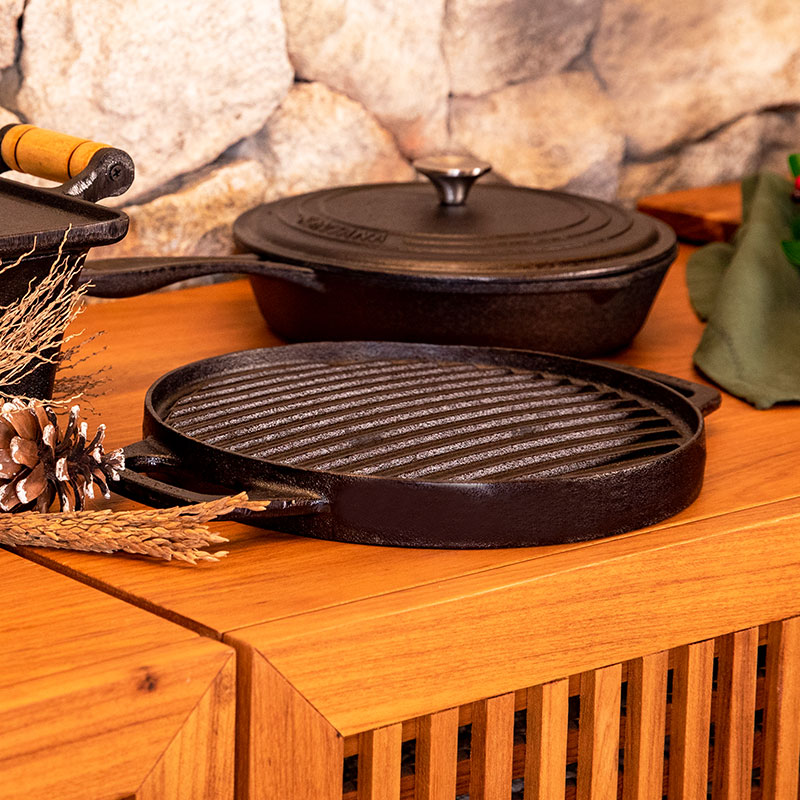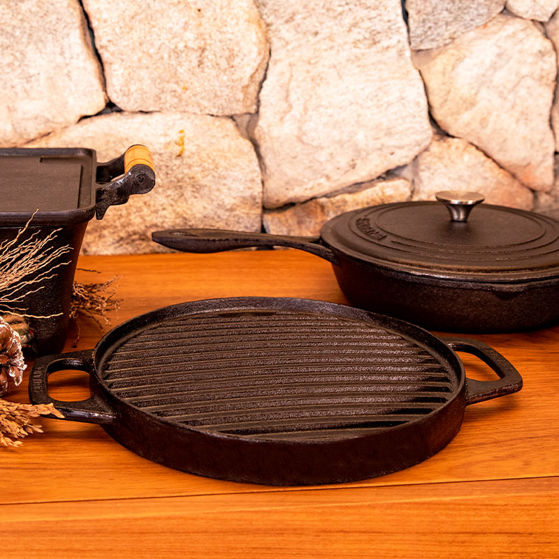 Fabricada em ferro fundido, proporciona distribuição de calor ideal, seja em fogão a gás, elétrico, a lenha ou cooktop de indução. Com revestimento 100% natural à base de óleo vegetal, oferece um preparo saudável e sustentável. Ideal para cozinhas residenciais e industriais, a Bifeteira Dupla Face é sinônimo de eficiência e durabilidade, perfeita para elevar o sabor dos seus pratos.