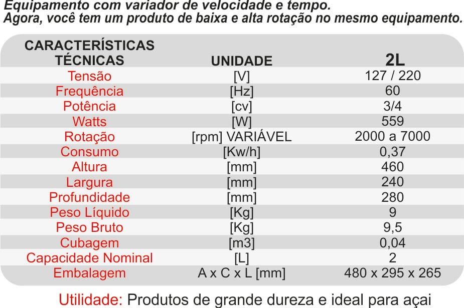 BLENDER INDUSTRIAL 2 LITROS – BM 100 NR – BIVOLT BERMAR