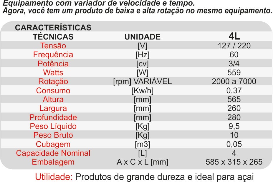 BLENDER INDUSTRIAL 4 LITROS – BM 123 NR – BIVOLT BERMAR