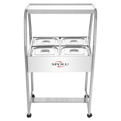O Buffet Salada 4 cubas SPOLU tem a função de manter suas saladas e alimentos conservados e resfriados enquanto em exposição. Acompanha 4 unidades de gelo-x, componete essencial para manter a temperatura resfriada. Possui cubas fabricadas em aço inox 201, tampas e moldura externa em aço inox 430 e estrutura de sustentação tubular. É de fácil mobilidade e manuseio devido a estrutura tubular que é dotada de rodízios giratórios.