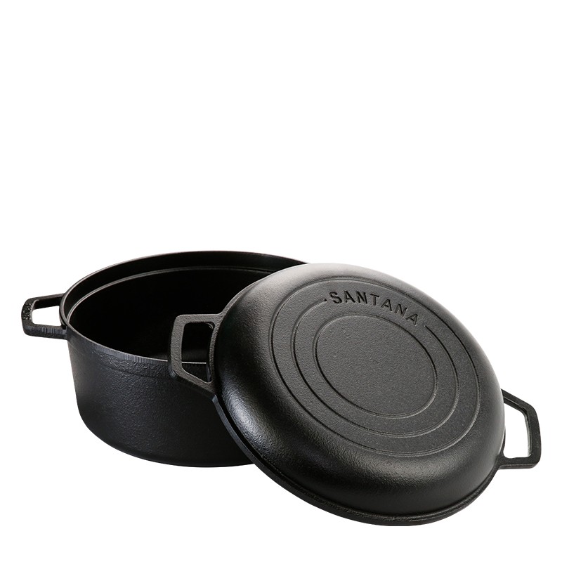 Alguns preferem a Caçarola, outros a Frigideira, mas você já parou para pensar na vantagem de poder contar com estes dois maravilhosos produtos de ferro fundido culinário juntos? É isso mesmo, nosso novo lançamento exclusivo da Santana é a Caçarola Duo, feita especialmente para você que quer economizar espaço, tendo duas em uma. É desse jeito, na Santana você escolhe a receita e nós te oferecemos a melhor opção para prepará-la!