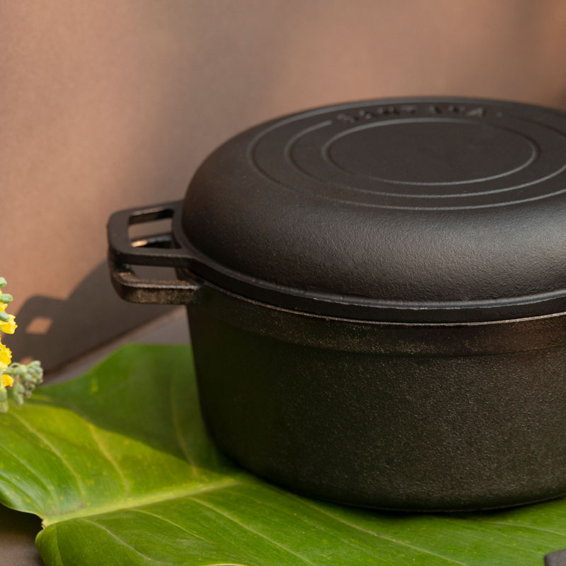 E lembrando que você pode utilizar suas duas partes juntas (tampa e caçarola de ferro), como forno holandês, ou separadamente, com a tampa como frigideira ou paella por exemplo, a caçarola como uma versátil, multifuncional e clássica panela de ferro. Não é o máximo?! E tem mais, não podemos deixar de mencionar que a Caçarola Duo conta com acabamento revestido com óleo 100% vegetal, por meio de um processo natural, livre de química, o que contribui para o cuidado com a sua saúde além de ser mais sustentável.