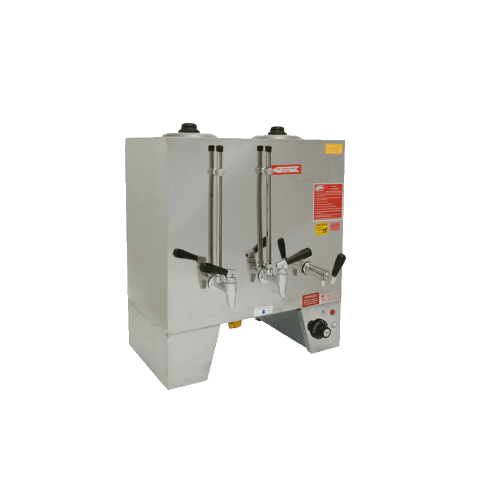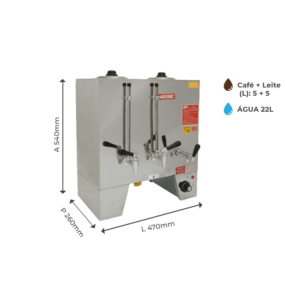 Está disponível em três modelos diferentes, com capacidade de 6, 8 ou 10 litros, sendo metade para leite e metade para café ou chá.