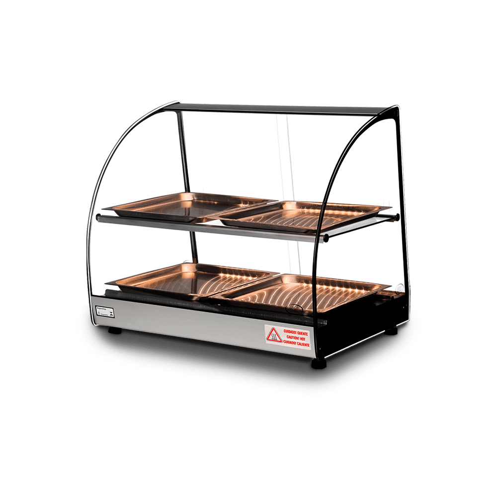Estrutura fabricada em perfil de alumínio anodizado e aço inox; iluminação interna LED; prateleira de vidro temperado com iluminação; bandejas estampadas em aço inox;  vidros laterais com serigrafia, tratados termicamente (não solta com temperatura); termostato; resistência elétrica em aço inox 304 tubular; fiação elétrica com revestimento em silicone resistente a 300°C.