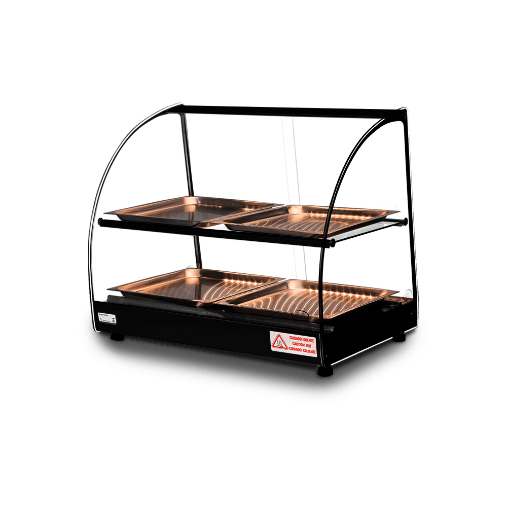 Estrutura fabricada em perfil de alumínio anodizado e aço inox; iluminação interna LED; prateleira de vidro temperado com iluminação; bandejas estampadas em aço inox; vidros laterais com serigrafia, tratados termicamente (não solta com temperatura); termostato; resistência elétrica em aço inox 304 tubular; fiação elétrica com revestimento em silicone resistente a 300°C.