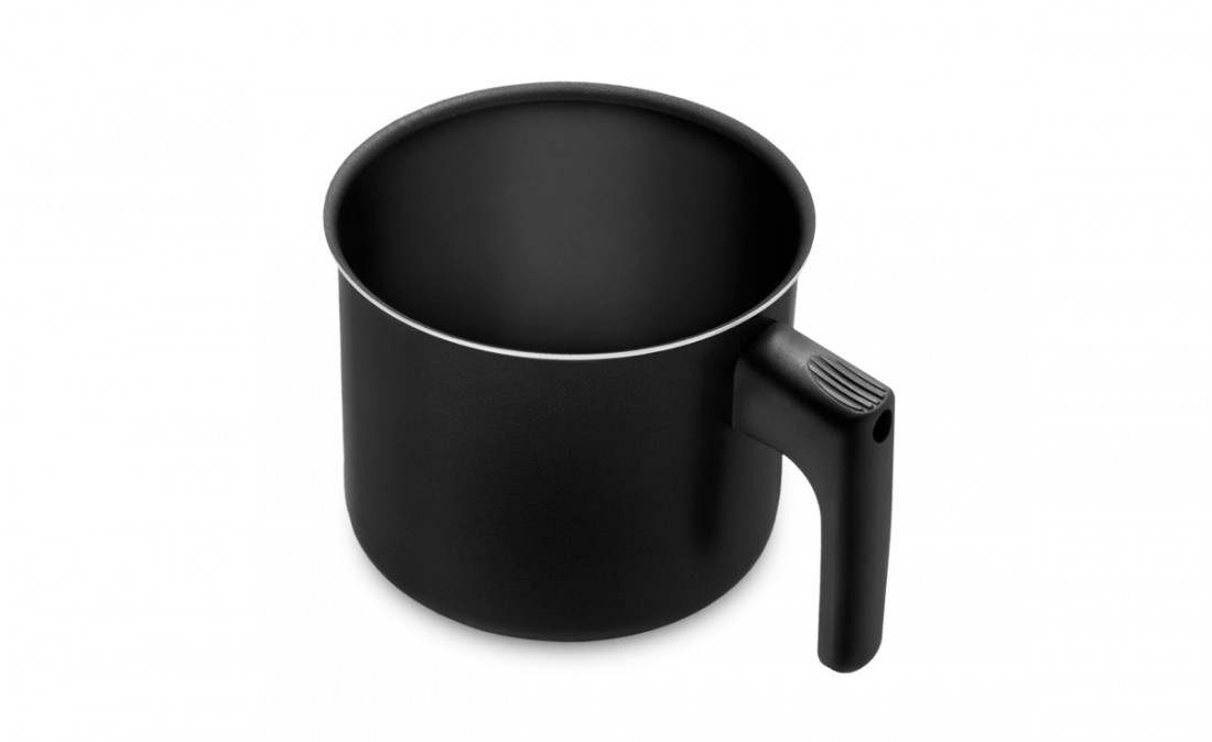 Descrição: Caneca em alumínio revestido com 5 camadas de antiaderente e cabo de baquelite.