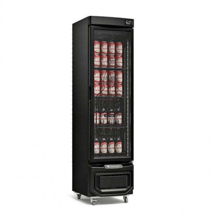 • Prateleiras Ajustáveis: Configure o espaço interno conforme sua necessidade com as prateleiras aramadas, proporcionando flexibilidade para acomodar latas, long necks e garrafas de diferentes tamanhos.