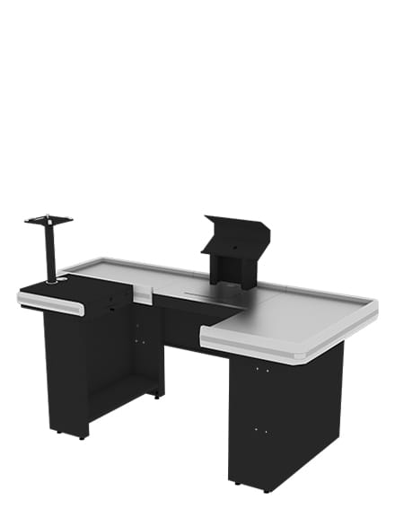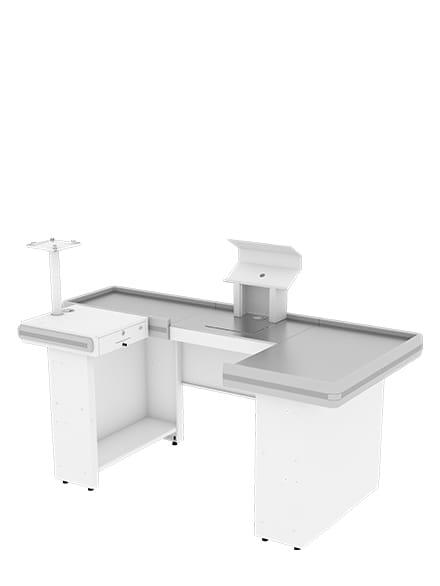 Pista inclinada opcional, o que facilita a movimentação de muitos itens. Incluí gaveta multiuso e kit automação, composto por suporte para teclado e para monitor. Tem preparação para balança compatível com Toledo 8217. Não estão inclusos a balança e o porta dinheiro. Pode ser montado tanto para o lado direito quanto para o esquerdo.