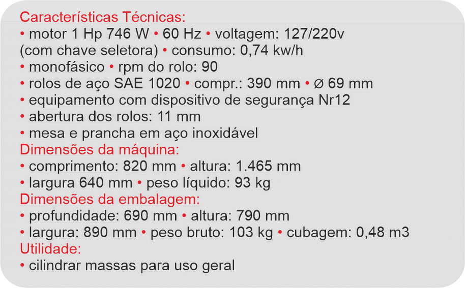 CILINDRO PARA MASSAS CB 390 COM PEDESTAL – BM 149 NR – BIVOLT BERMAR
