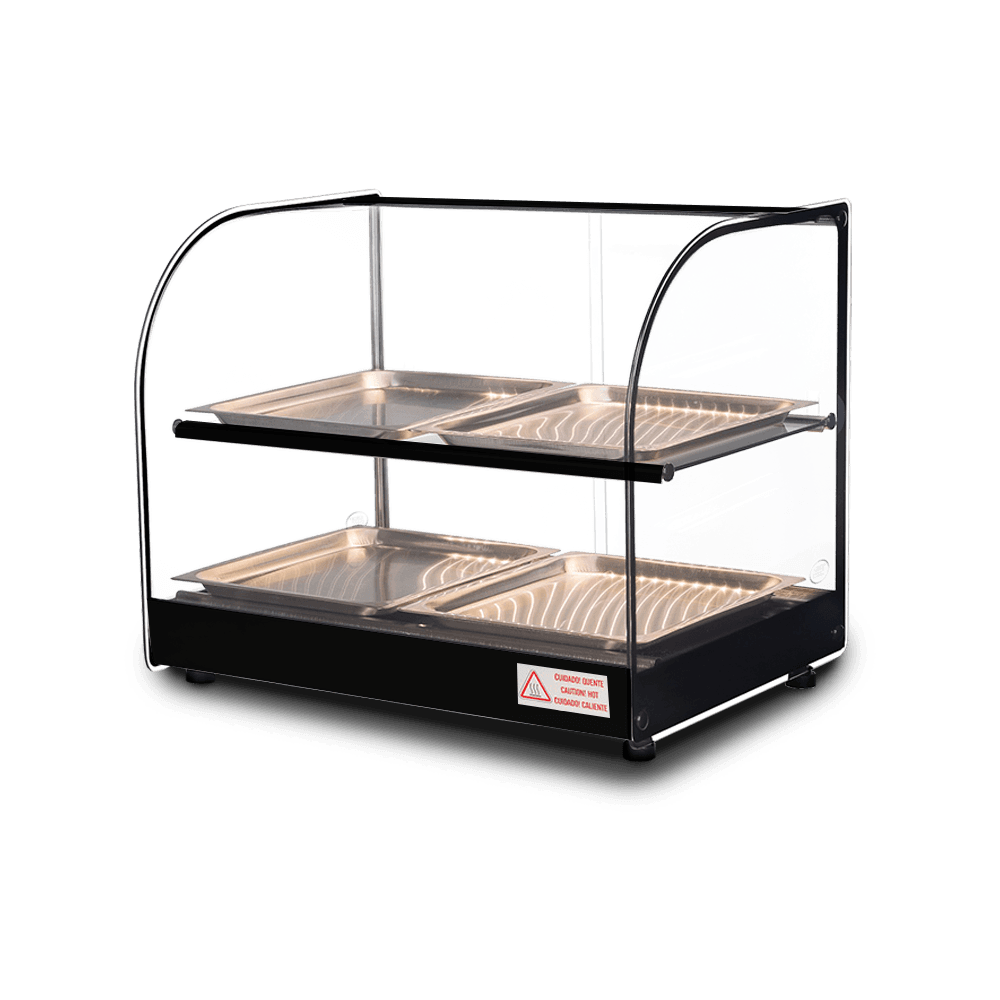 Estrutura fabricada em perfil de alumínio anodizado e aço inox; iluminação interna LED; prateleira de vidro temperado com iluminação; bandejas estampadas em aço inox;  vidros laterais com serigrafia, tratados termicamente (não solta com temperatura); termostato; resistência elétrica em aço inox 304 tubular; fiação elétrica com revestimento em silicone resistente a 300°C.