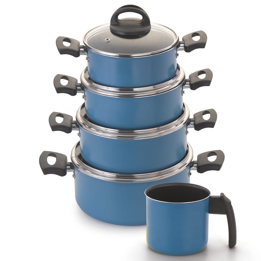 Conjunto Caçarolas Color 18 a 24 com tampa de vidro / Fervedor 14 Alumínio Nacional
