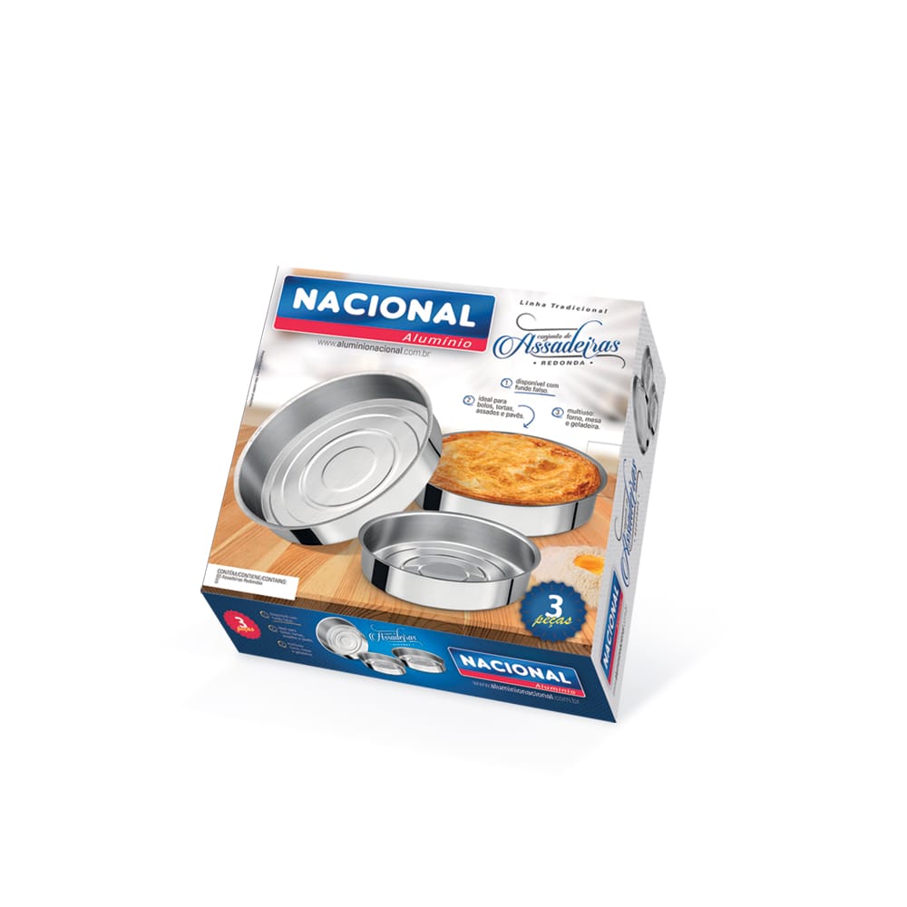 Conjunto de Assadeiras Redonda Alta com Fundo Falso 1 A 3 Alumínio Nacional