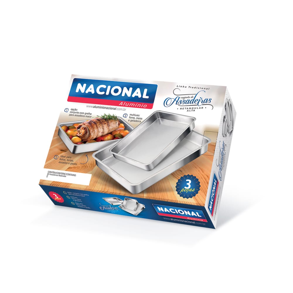 Conjunto de Assadeiras Retangular Alta 1 A 3 Alumínio Nacional