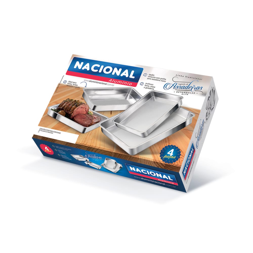 Conjunto de Assadeiras Retangular Alta 1 A 4 Alumínio Nacional