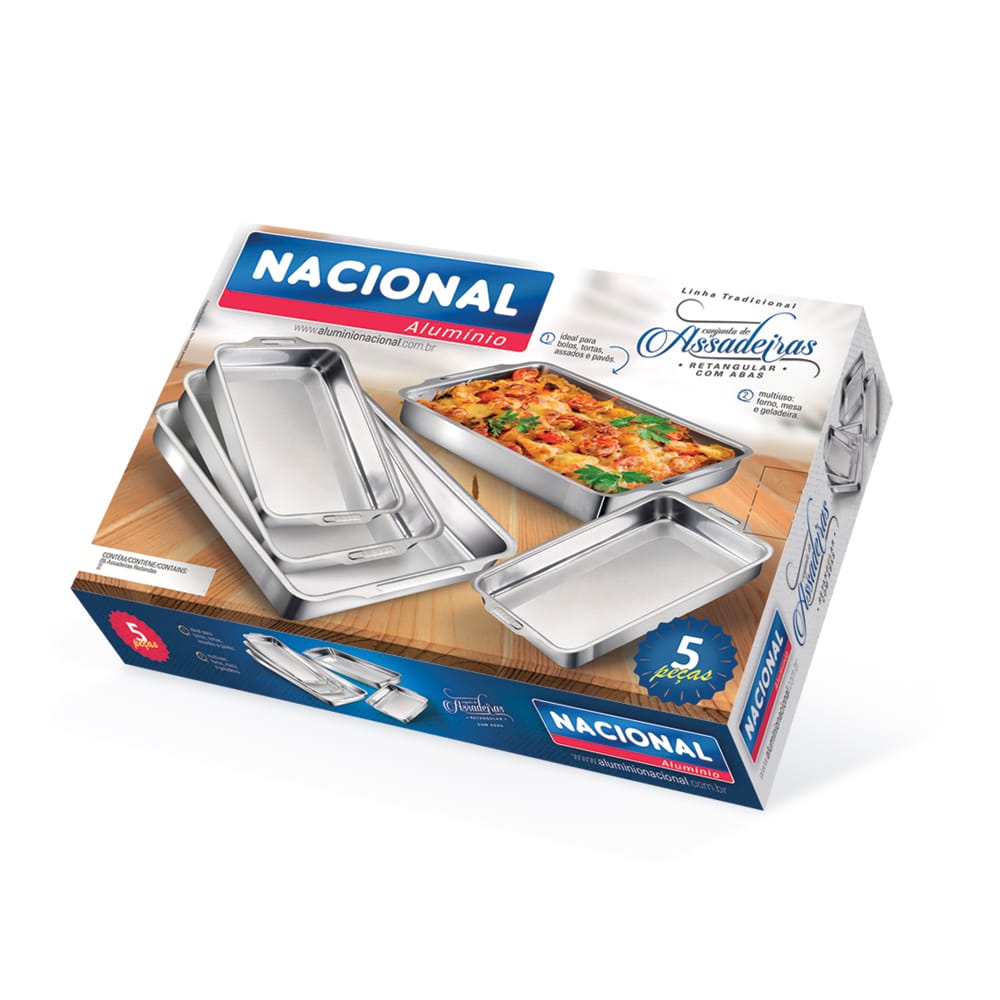 Conjunto de Assadeiras Retangular Alta com Aba 1 a 5 Alumínio Nacional