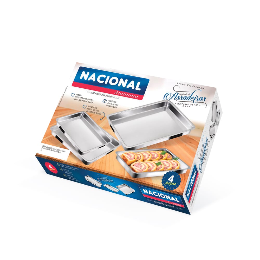 Conjunto de Assadeiras Retangular Baixa 1 A 4 Alumínio Nacional