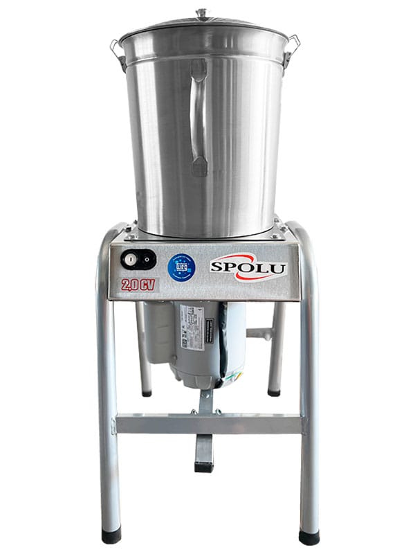 Cortador Industrial Cutter da Spolu. Cortador de alto rendimento, desenvolvido para processar todos os tipos de alimentos, seja em misturar, moer, picar, amassar com velocidade e eficiência dando consistência e qualidade. Indicado para picados, recheios finos, emulsões, mousses, triturados e amassados com uma qualidade impecável. Tem sistema de lâmina em aço inox que gira dentro de um recipiente, picando os alimentos.