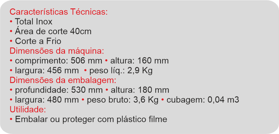 EMBALADORA DE FILME MANUAL 40 CM – CORTE FRIO – BM 156 BERMAR