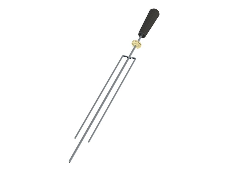 O Espeto Tridente pode ser utilizado para as churrasqueiras: Tradicional, Compacta e Plus. O espeto é fabricado em aço inóx 430 e possui a engrenagem giratória em dois modelos: náilon ou de ferro.