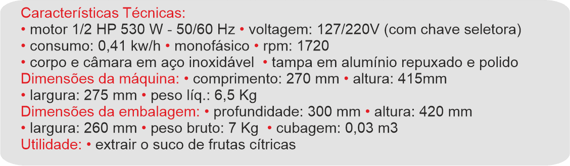 EXTRATOR DE SUCO SUPER 1/2 HP – BM 79 NR – BIVOLT BERMAR