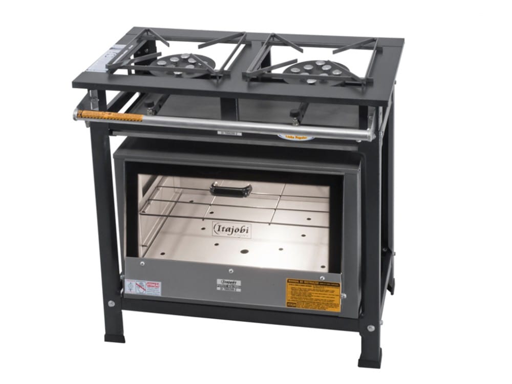 Estrutura do fogão em Chapa de aço carbono com pintura epóxi ou aço inox escovado.