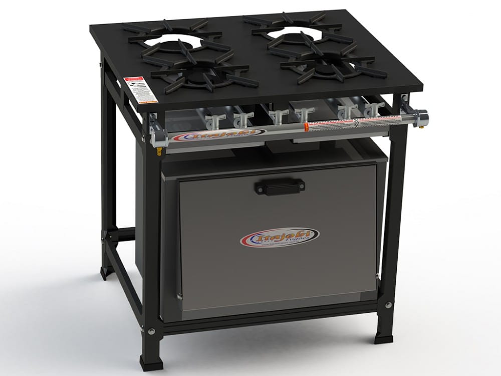 *Modelos ESTAMPADOS (inox ou pintado) são de baixa pressão, com opção de apenas queimadores simples, ou com opção de queimadores simples e duplos em um só produto.