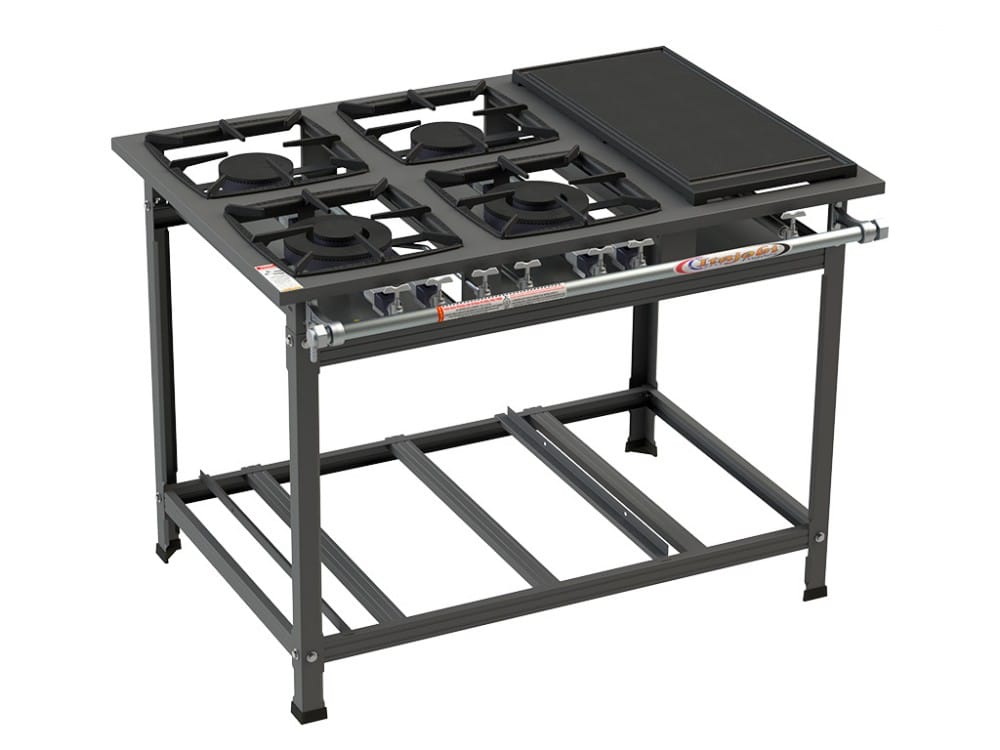 A linha de fogões Ativos  30×30 é confeccionada em chapa aço carbono com pintura Epóxi. Seus queimadores são nos modelos de Q. Simples(90mm) no modelo de Alta Pressão e Q. Simples(100mm), Q. Simples Maior(130mm), Q. Duplo(135mm), Q. Duplo(170mm) em Baixa Pressão, todos fabricados em ferro fundido. As grelhas são confeccionadas em ferro fundido no tamanho 30×30 cm. O produto apresenta tubo coletor de gás pintado e bandeja coletora de resíduos. Esta linha apresenta fogões de 1 à 8 bocas com opção de forno, chapa e banho maria.