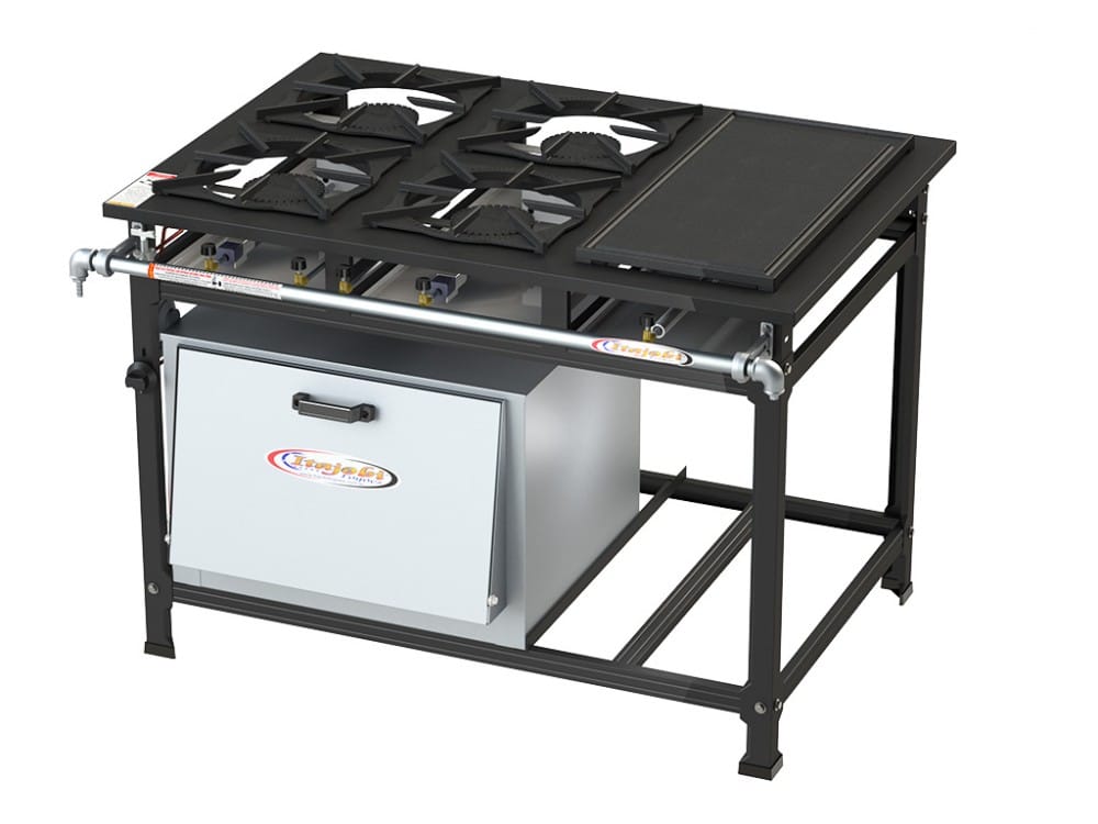 Estrutura do fogão em Chapa de aço carbono com pintura epóxi ou aço inox escovado.