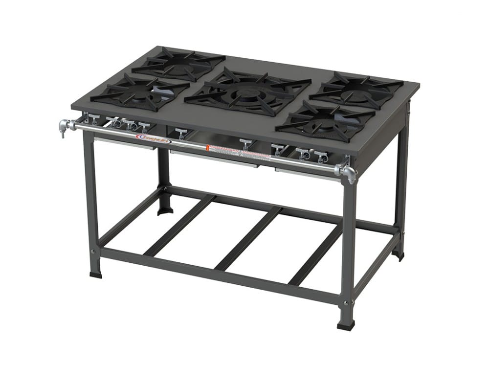 A linha de fogão industrial Mult-Uso é confeccionada em chapa de aço carbono com pintura Epóxi ou em aço inox 430. Sua estrutura é diferenciada para atender a necessidade de diversas funções de uso, podendo mixar tamanhos de bocas diferentes em um só produto. Possui todos os tamanhos de grelhas, 30×30 e 40×40 confeccionadas em ferro fundido. Estes fogões têm todos os modelos de registros, Torneira e Palito, no fogão inox o registro padrão é o Apís. Os queimadores desta linha são fabricados em ferro fundido nos modelos Q. Simples, Q. Duplo e Q. Triplo. Fogões somente em Baixa Pressão e com opção de forno.