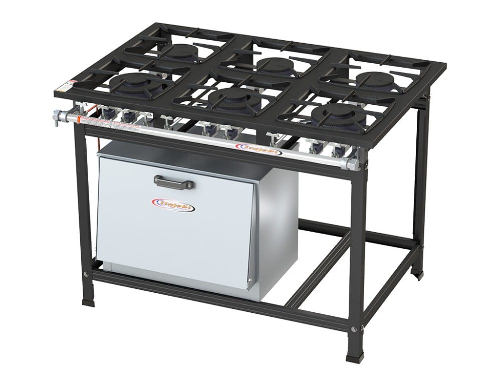 A linha de fogões Ativos 30×30 é confeccionada em chapa aço carbono com pintura Epóxi. Seus queimadores são nos modelos de Q. Simples(90mm) no modelo de Alta Pressão e Q. Simples(100mm), Q. Simples Maior(130mm), Q. Duplo(135mm), Q. Duplo(170mm) em Baixa Pressão, todos fabricados em ferro fundido. As grelhas são confeccionadas em ferro fundido no tamanho 30×30 cm. O produto apresenta tubo coletor de gás pintado e bandeja coletora de resíduos. Esta linha apresenta fogões de 1 à 8 bocas com opção de forno, chapa e banho maria.