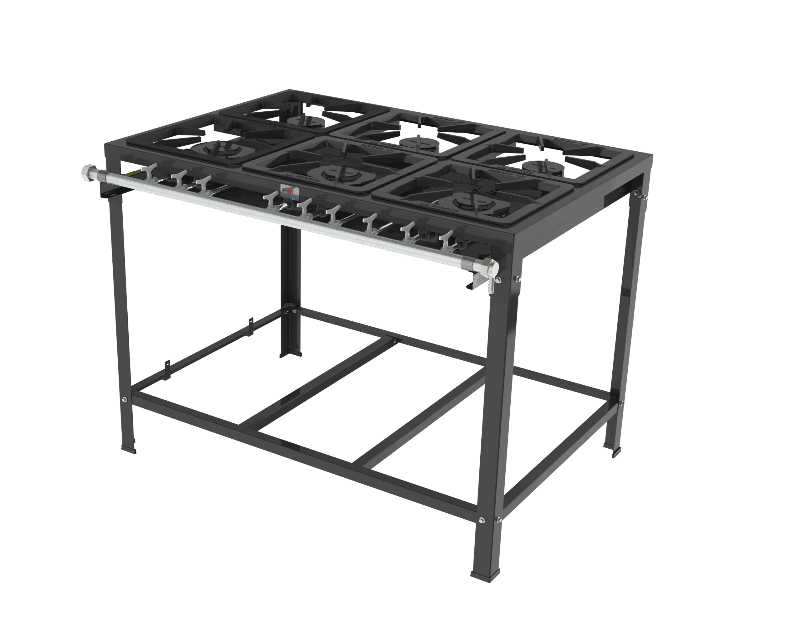 • Queimadores em ferro fundido: 03 queimador duplo 600 g/h