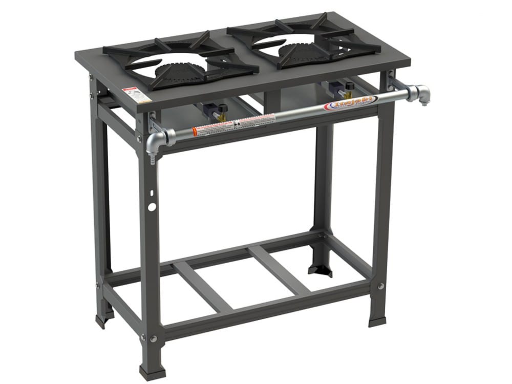 Estrutura do fogão em Chapa de aço carbono com pintura epóxi ou aço inox escovado.