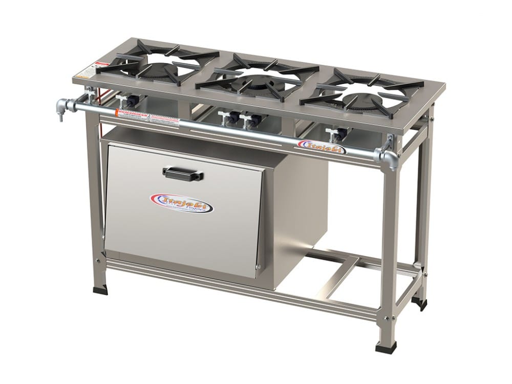 Estrutura do fogão em Chapa de aço carbono com pintura epóxi ou aço inox escovado.