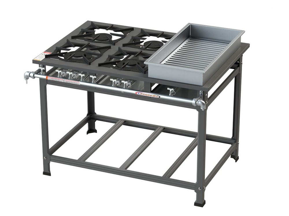 Estrutura do fogão em Chapa de aço carbono com pintura epóxi ou aço inox escovado.