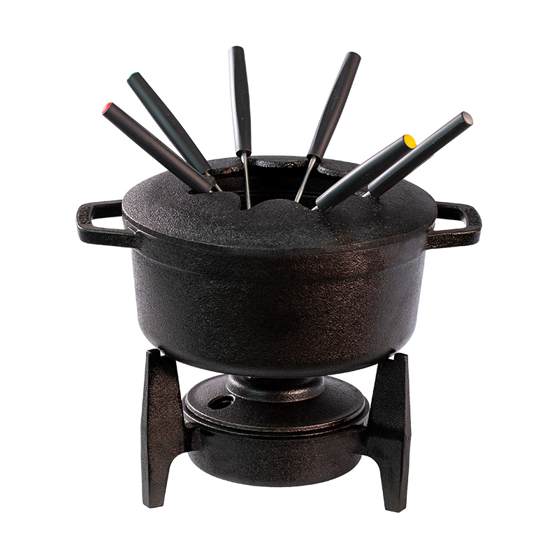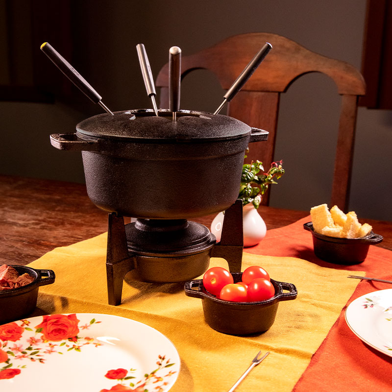 A excelente retenção de calor do ferro fundido assegura que seu fondue permaneça deliciosamente aquecido por um período prolongado, permitindo que você desfrute de cada momento da experiência. Os utensílios da Sant’ana são conhecidos por sua versatilidade, e esta panela de fondue não é exceção. Ideal para diversos tipos de receitas, ela transita facilmente do fogão à mesa, servindo com elegância e sofisticação.