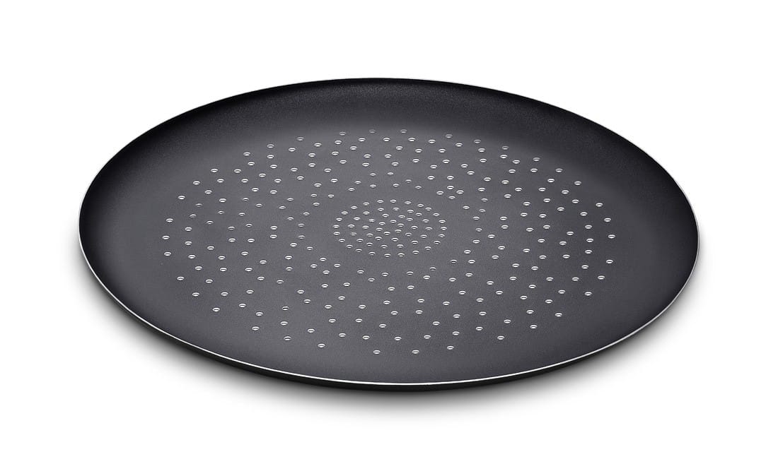 Descrição: Forma de pizza abaulada com furos em alumínio revestido com 5 camadas de antiaderente.