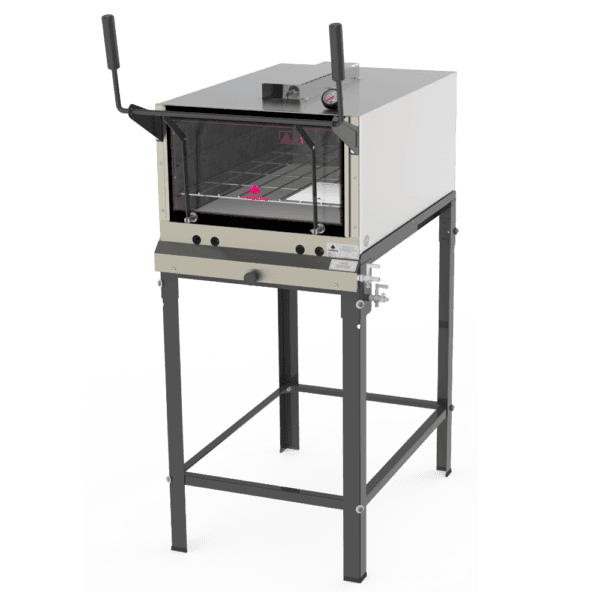Com cavalete desmontável, sapatas plásticas, gaveta móvel, placas refratárias, termômetro para controle de temperatura e porta tipo guilhotina;