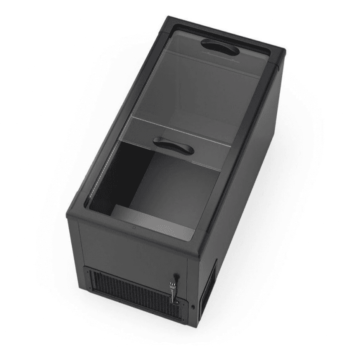 O design interno é caracterizado pelo revestimento em aço pré-pintado preto, garantindo um ambiente higiênico para seus produtos. As tampas de vidro temperado, deslizantes e baixo emissivo, oferecem fácil acesso e visibilidade clara do interior. O colarinho em ABS com cabeceiras injetadas e o gabinete com rodízios proporcionam durabilidade e mobilidade conveniente.